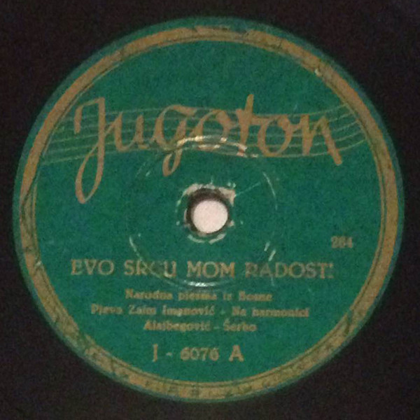 De nuevo aquí, si nos ponemos, es posible que nunca acabemos de identificar todos y cada uno de los homenajes que decenas y decenas de artistas han brindado, en más de setenta años, a este Evo srcu mom radosti. Posiblemente, una de las grabaciones más antiguas que se conserven sea la que realizaron, mano a mano, como buenos amigos que fueron, y pioneros en la recuperación del género, Zaim Imamović e Ismet Alajbegović Šerbo. Abría un disco de 78 RPM, que completaba Ja zagrizoh šareniku jabuku. Una joya, sin duda, recuperada en posteriores recopilatorios, tanto de Zaim, como colectivos. Desde entonces, hasta, prácticamente, ayer, las revisiones han sido constante por parte de grandes figuras como Safet Isović, Nada Mamula, Rade Mladenović (en su Kad ja pođoh, draga), Nedžad Salković (magnífica su aportación del 72), un inspirado Predrag Gojković Cune, Nedeljko Bilkić o, en los 80, el singular Janika Balaž.