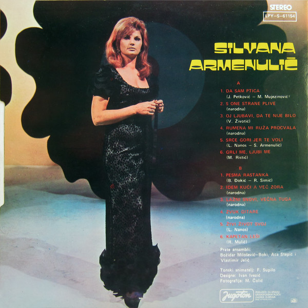 Nuestra querida Silvana pudo ver editada su versión en 1974 (poco menos de dos años antes de fallecer en un accidente de coche). La cantante ya era una grande cuando vio la luz, vía Jugoton, un soberbio elepé homónimo, repleto de magníficas interpretaciones (reparen en aquel endiablado Da sam ptica, o en su S one strane Plive), que contó con la ayuda de las orquestas de Aca Stepić y el incomparable Boki Milošević. El clarinetista serbio, precisamente, es el encargado de acompañar a la Armenulić en una ejecución bella y acongojante, que se inicia con un violín certero, punzante y melancólico. De inmediato, la diva despliega su maestría con impetuosa serenidad, consiguiendo que el oyente quede petrificado. La efectiva alternancia Boki–Silvana acaba de rematar una faena repleta de dignidad y señorío. Por cierto, de nuevo, como suele ocurrir cuando una sevdalinka recurre al elemento campestre, florido y de la llegada de la primavera, volvemos a toparnos con un texto repleto de dobles sentidos. Un texto que, por cierto, es muy corto (tres frases), y cuyo título lo dice todo: «Una rosa amarilla floreció para mí«. Una joven explica que tan solo hay disponible un sendero, y que por él llega su amado montado en caballo. El resto podemos imaginárnoslo.