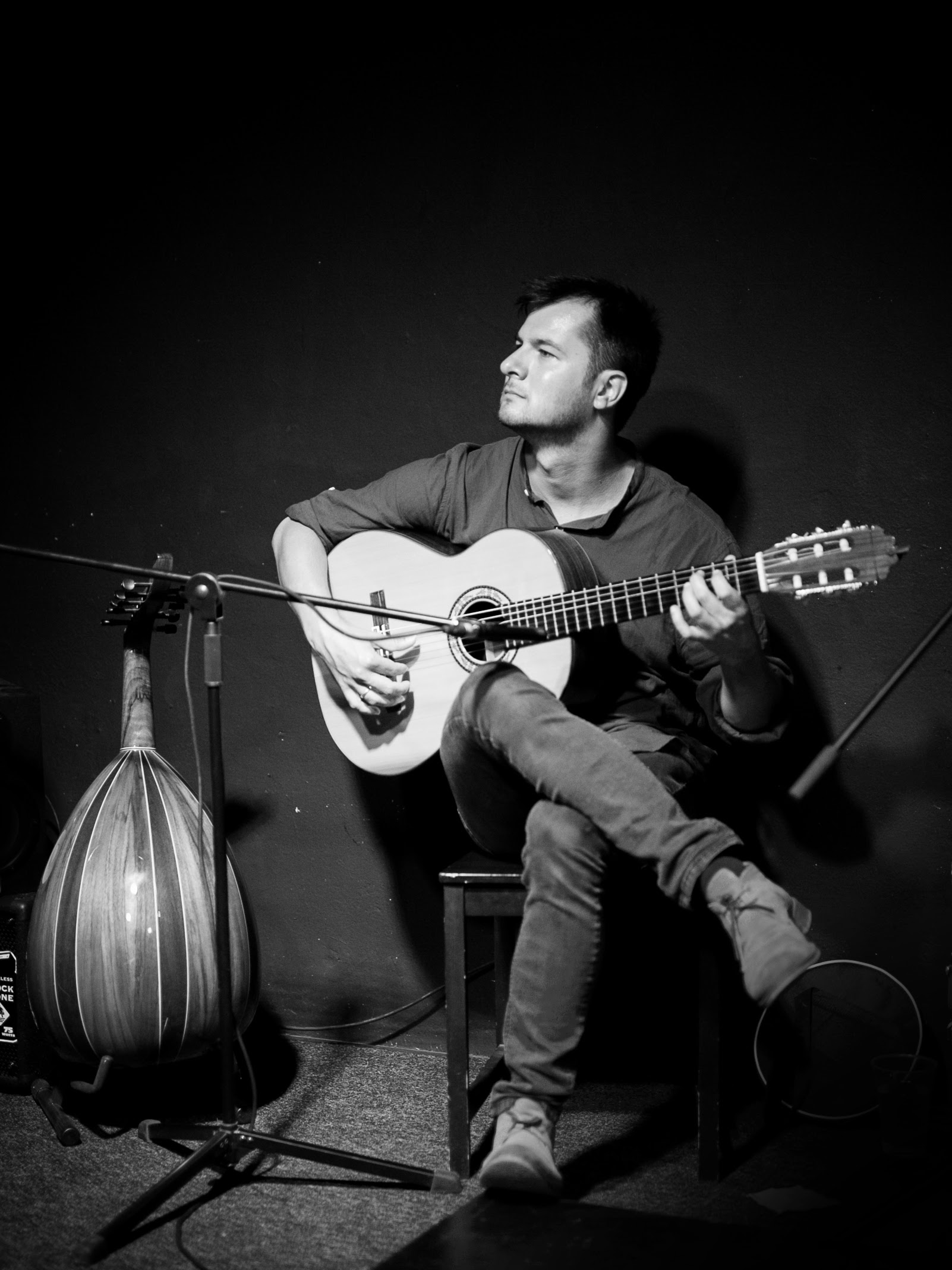 -Aprendí mucho de mi mentor de guitarra y gran amigo Sanel Sabitović, fantástico guitarrista y compositor que vive y trabaja en Berlín. Él me mostró la puerta al mundo maqam y me ayudó a entenderlo. Su estilo de interpretación tiene una gran influencia en mi forma de tocar y, de hecho, cada vez que tengo una idea nueva, él es la primera persona con la que la comparto, y acepto sus consejos y comentarios. Además de la guitarra, toco el oud árabe y, dado que trato de imitar maqams en la guitarra, agregué dos pequeños trastes para poder obtener los cuartos de tono que son esenciales para interpretar la música maqam. Todavía no es tan preciso como el mástil sin trastes del oud, pero le confiere ese espíritu del maqam a mi guitarra flamenca.